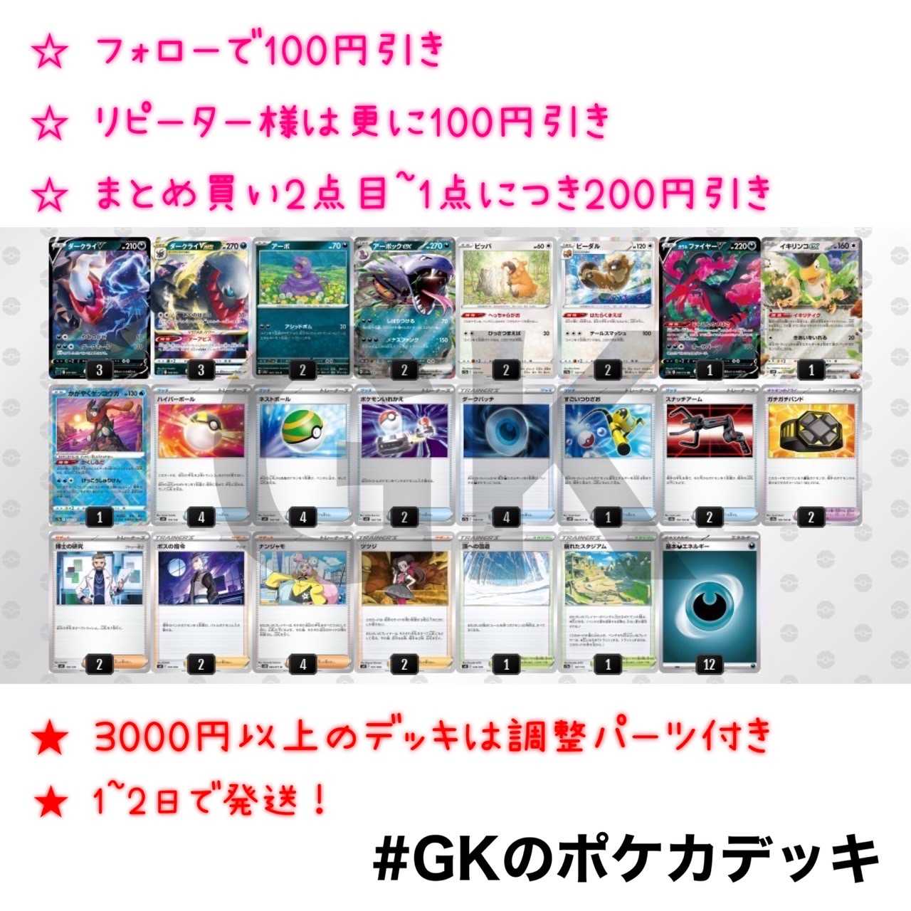 ダークライVSTARアーボックex優勝ポケモンカード構築済みデッキ
