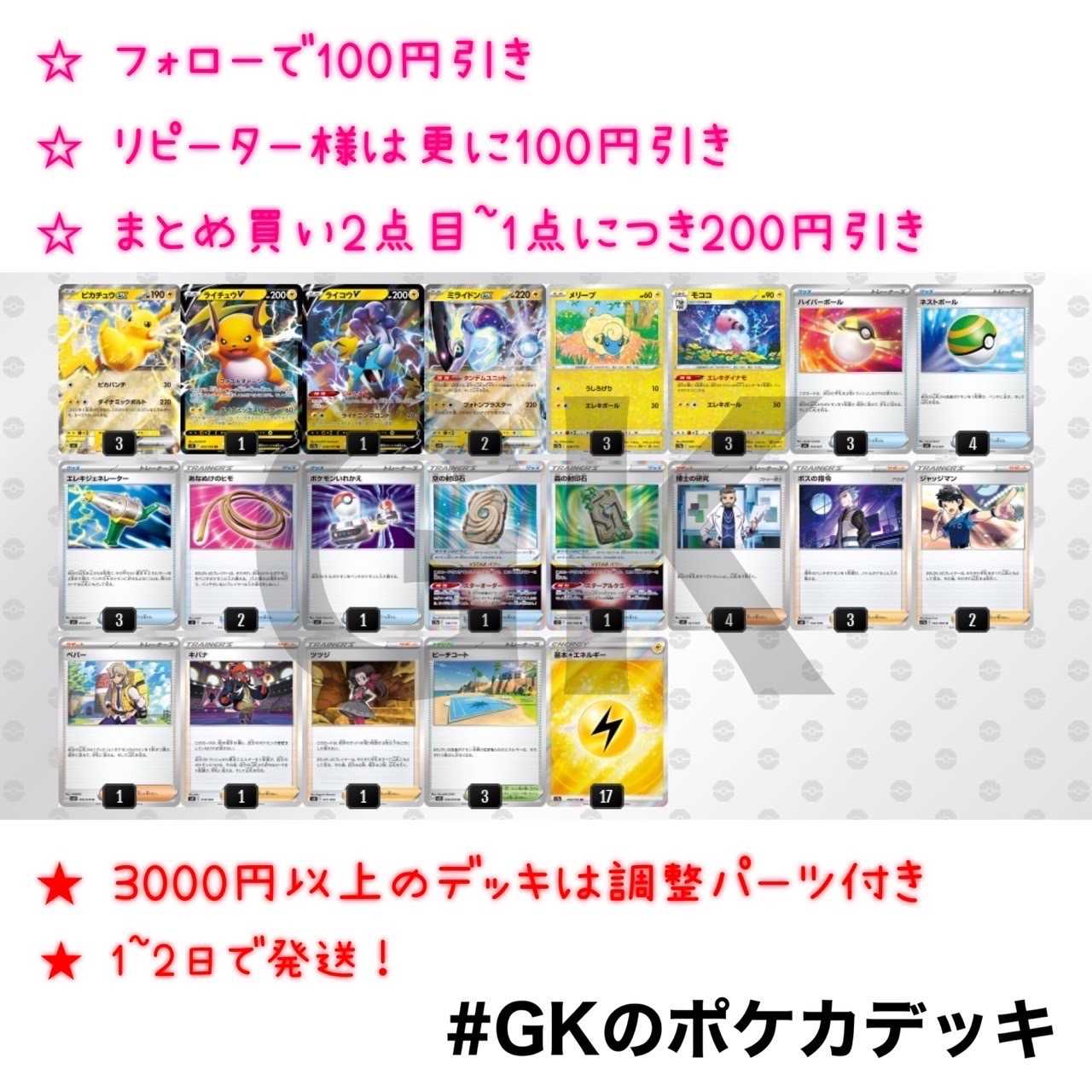 ミライドンexピカチュウexジムバトル優勝ポケモンカード構築済みデッキ
